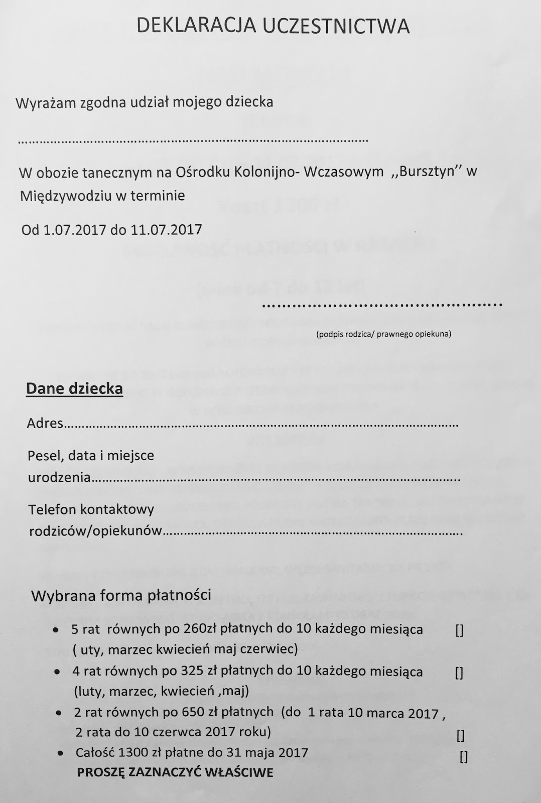 UDZIAŁ W OBOZIE MOGĄ RÓWNIEŻ WZIĄĆ DZIECI, KTÓRE NIE NALEŻĄ DO ZESPOŁU TANECZNEGO!